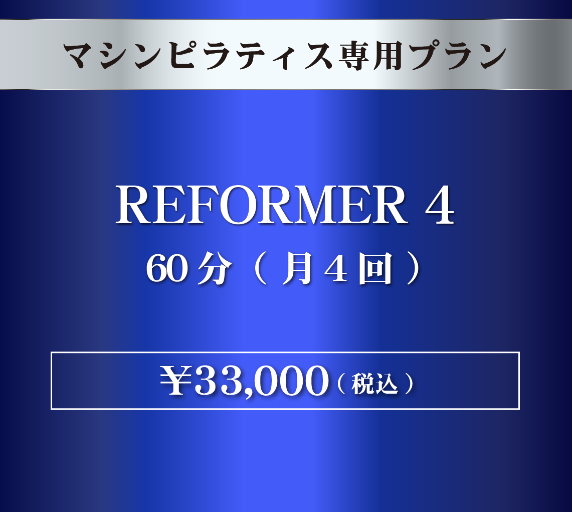 マシンピラティス60分×月4回コース はじめての方におすすめ!姿勢を改善して、体の柔軟性を高めたい方に ※マシンピラティス専用プランとなります。